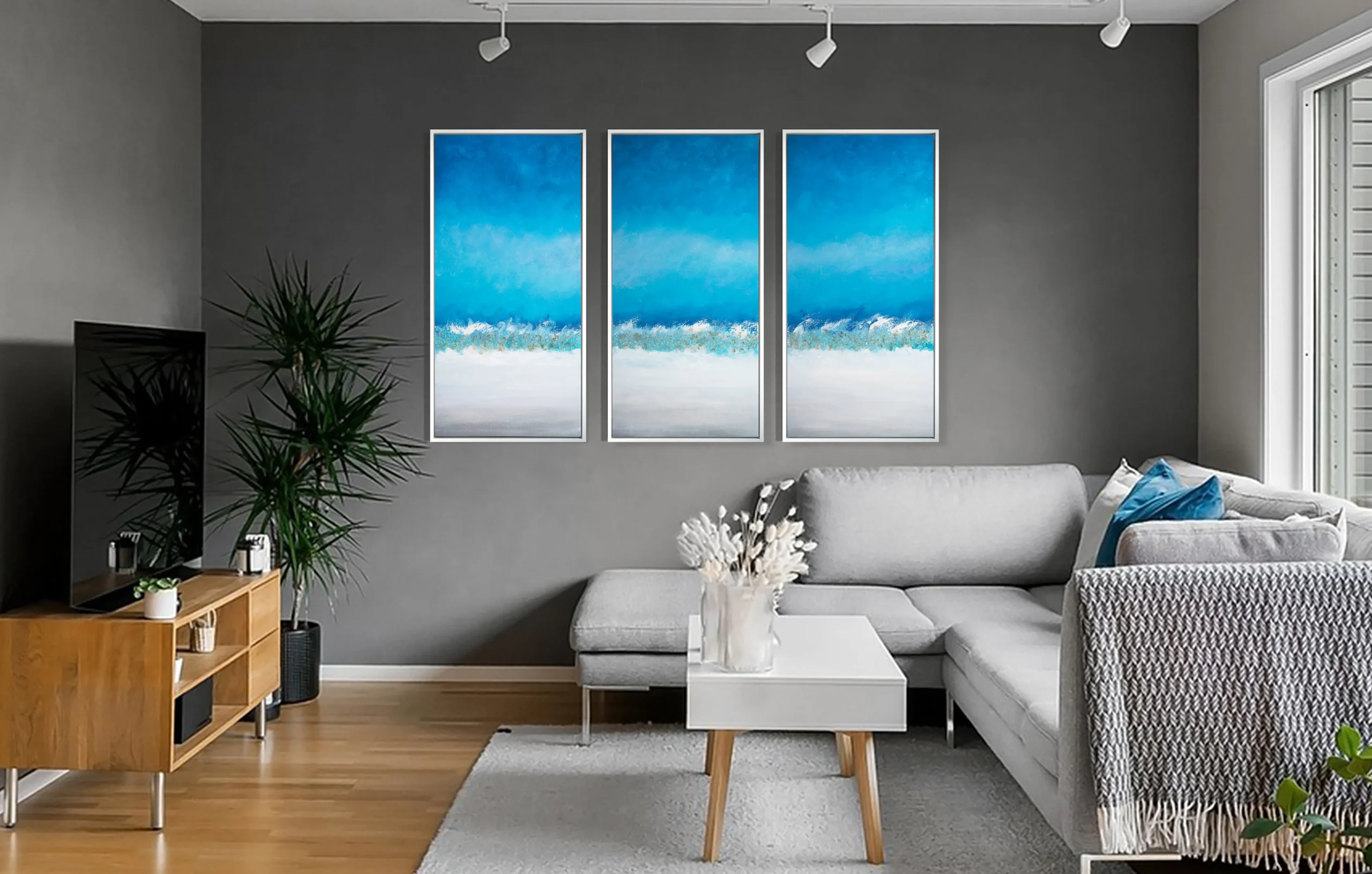 A luminous coastal triptych crafted to bring openness, calm, and a sense of quiet distance.